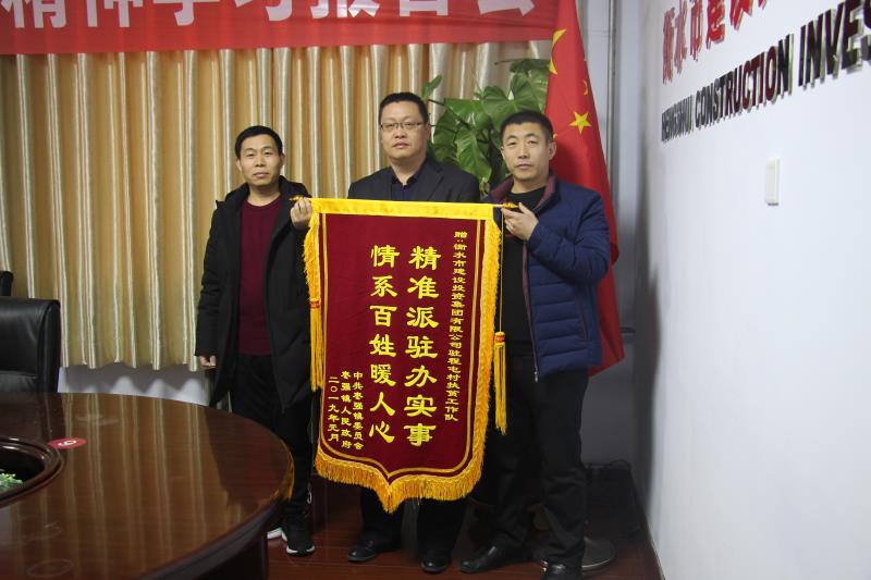 2月1日上午,棗強鎮(zhèn)黨委副書記劉紅光帶領(lǐng)程屯、閆楊官村“兩委”干部一行4人,將寫有“精準派駐辦實事 情系百姓暖人心”、“精準幫扶鋪就小康路 脫貧致富感恩建投人”、“精準幫扶系民心 脫貧致富奔小康”的三面錦旗贈送給市建投集團,感謝集團黨委及駐村工作隊為民幫扶脫貧、致富奔小康。