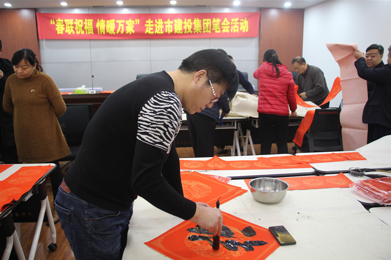1月22日下午,衡水市書法家協(xié)會的書法家一行5人,在書協(xié)主席馮書根的帶領(lǐng)下走進(jìn)市建投資集團(tuán),開展“春聯(lián)祝福,情暖萬家”筆會活動。集團(tuán)副總經(jīng)理韓石忠到場發(fā)表講話。