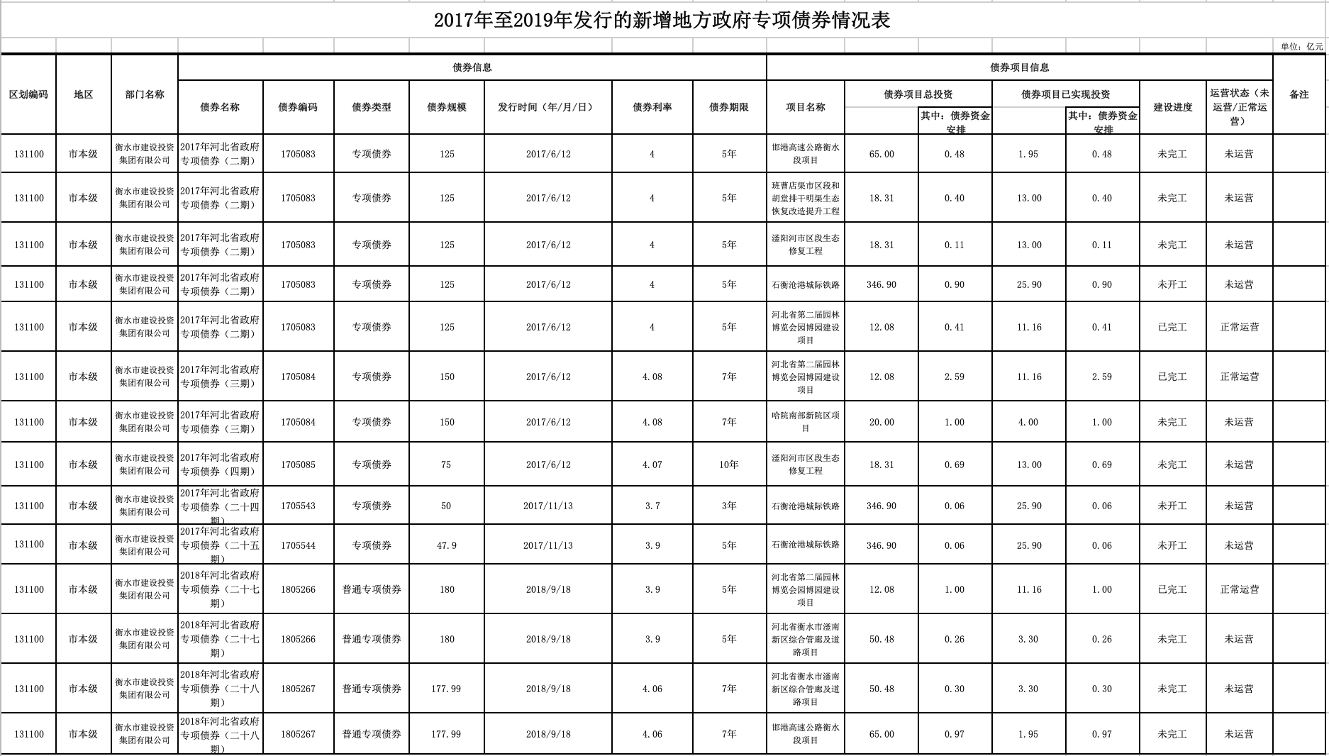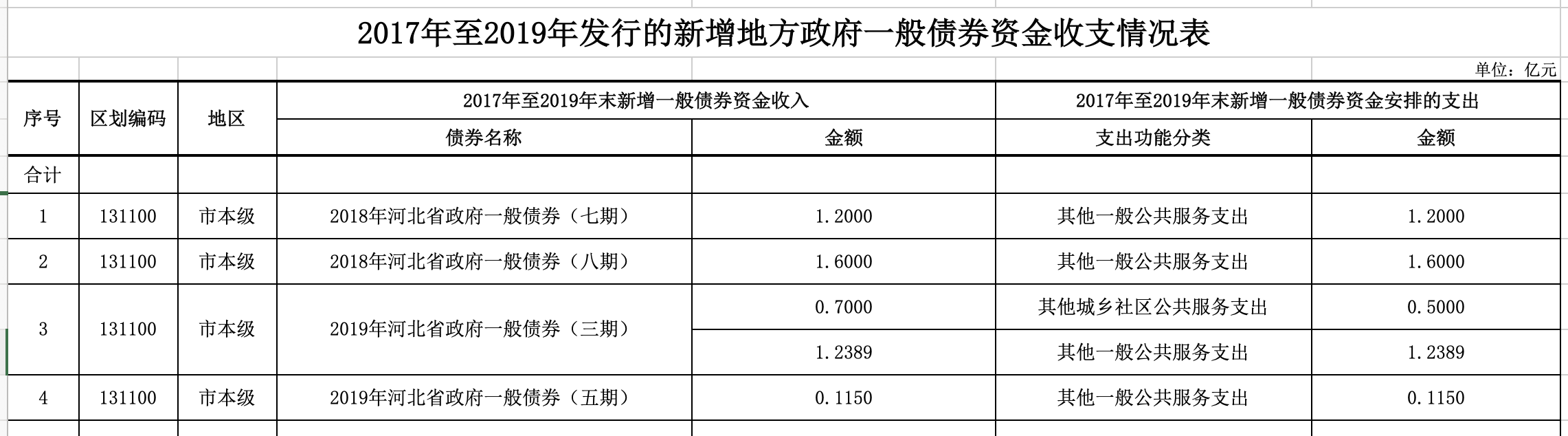 2017年至2019年發(fā)行的新增地方政府債券情況信息公開
